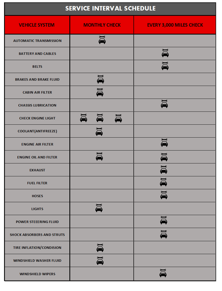 Always consult your owner's manual for individual service schedules because maintenance requirements vary by manufacturer.
